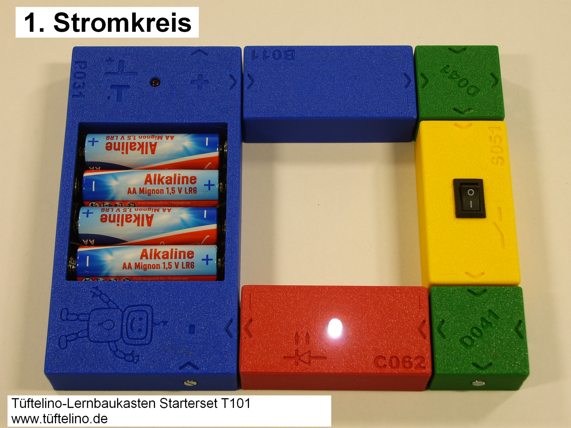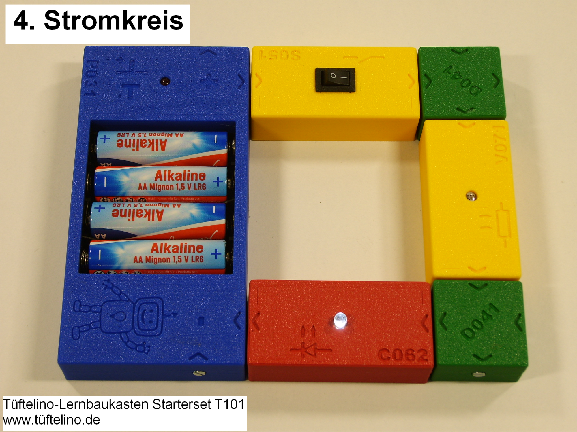 Dieser Lernbaukasten ist das Grundset für Einsteiger und geeignet für Kinder ab 3 Jahren. Es beinhaltet Bausteine, um 4 spannende erste Stromkreise zu verbinden.