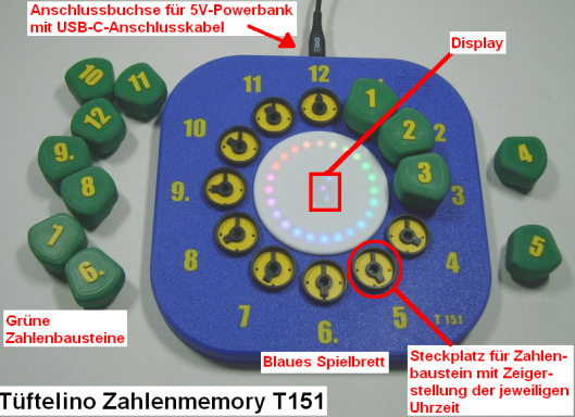 Mit diesem Lernbaukasten lernen Kinder ab 3 Jahren spielerisch die Zahlen von 1 bis 12. Das interaktive Memory mit 12 unterschiedlichen Schwierigkeitsstufen trainiert Erinne-rungsvermögen und Geschicklichkeit. Dabei sind die Zahlen auf dem Spielbrett genauso angeordnet wie bei der Uhr, so dass die Kinder "ganz nebenbei" an das Lesen der Uhr herangeführt werden. Für ältere Kinder und Erwachsene jeden Alters besteht die Herausforderung im Meistern immer höherer Level.